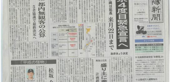 令和3年7月8日(木)の山陽新聞、全県版に永田会長のコメントが掲載されています。