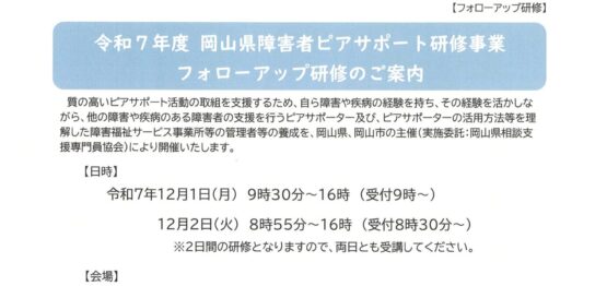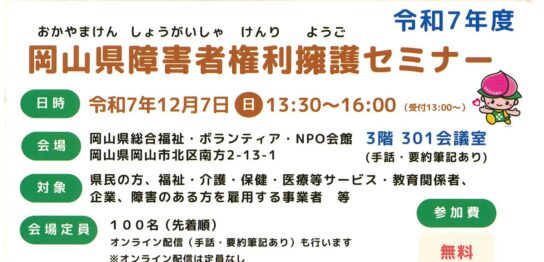 会員の皆様へ 今年も岡山県障害福祉課様より実施委託をいただき、標記